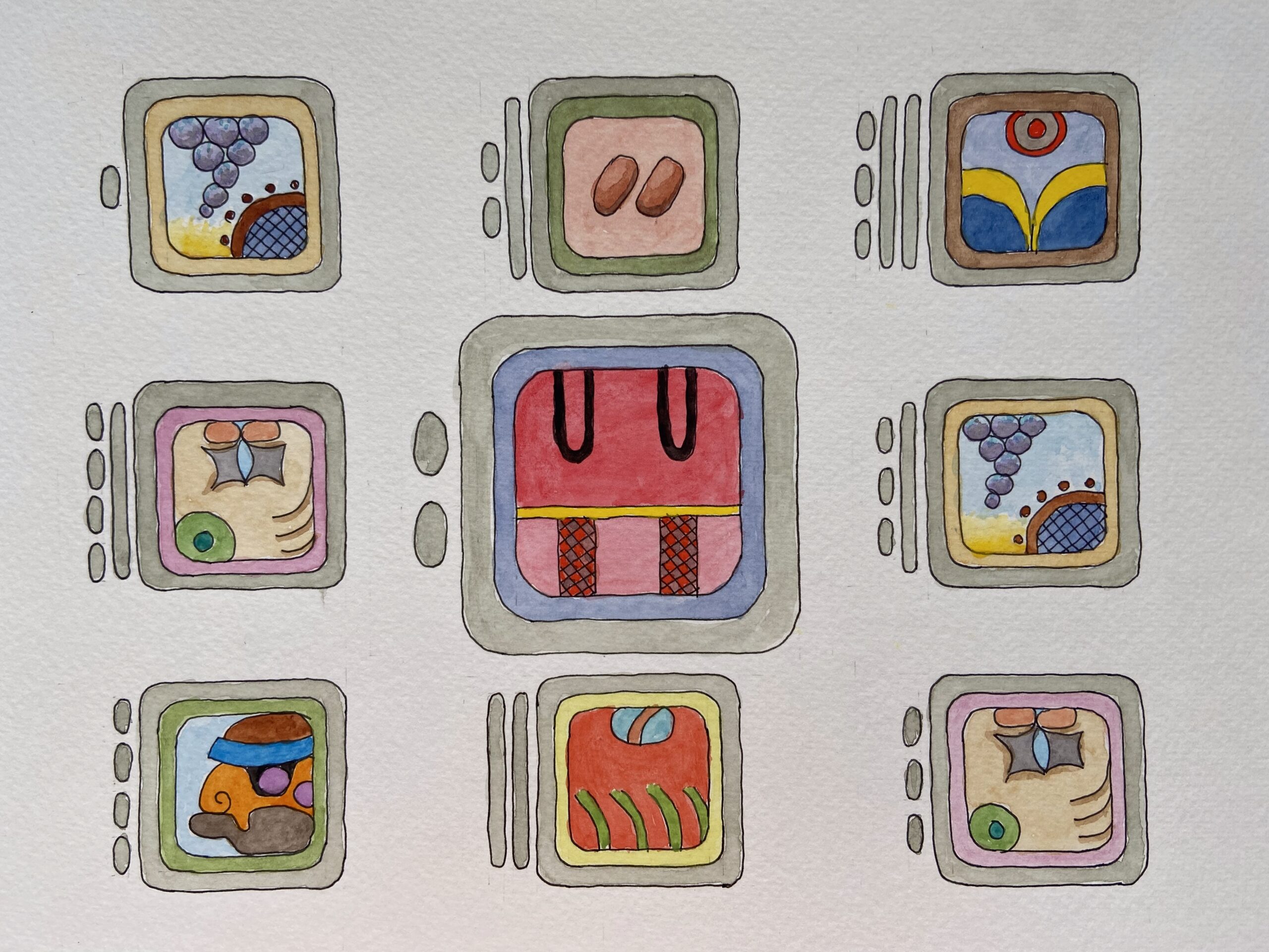 Desenhos dos glifos baseados em John Montgomery. Imagens meramente ilustrativas: traços e cores podem variar em pinturas por encomenda.